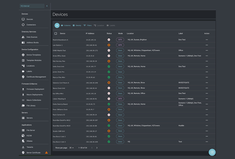 Access rich building usage insights, including in environments where Webex Control Hub can’t be used. Data from your Cisco devices’ occupancy sensors is available in VQ Conference Manager, and can be fed to your existing workplace analytics platforms.