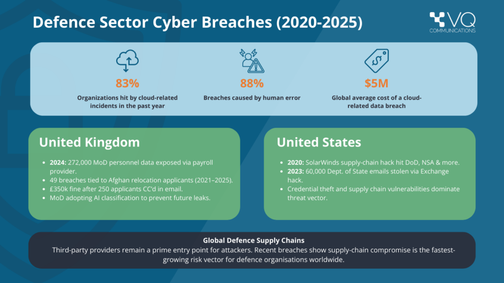 Underlining why defense organisations need to extend their sovereign collaboration frameworks beyond in-house systems, approximately 270,000 current and former military personnel were impacted by an indirect breach of the UK Ministry of Defense (MOD). In 2024, a third-party payroll system was compromised, disclosing names, addresses, and bank details.