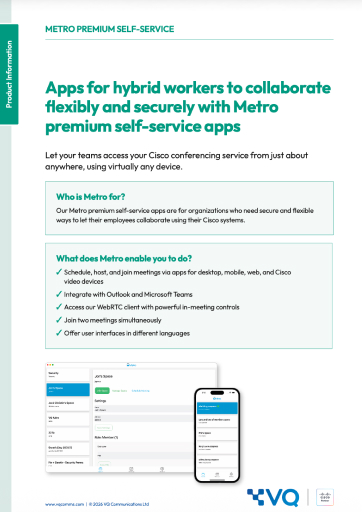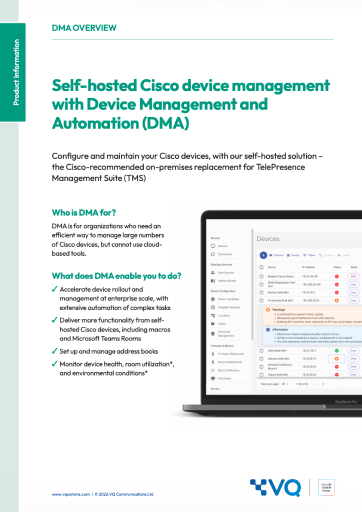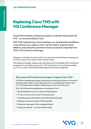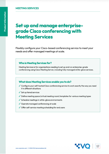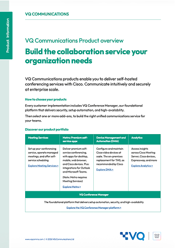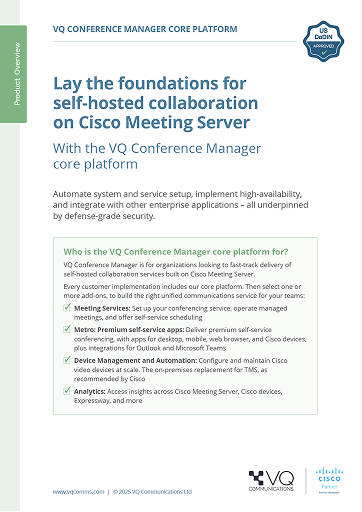 VQ Conference Manager is for organizations looking to fast-track delivery of self-hosted collaboration services built on Cisco Meeting Server.